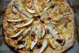 *thinly sliced Asian pears, mozzarella cheese, garlic infused olive oil, salt and pepper, crispy caramelized onions, crumbled goat cheese, and a drizzle of honey. A pizza for the sophisticated palate, for sure.
